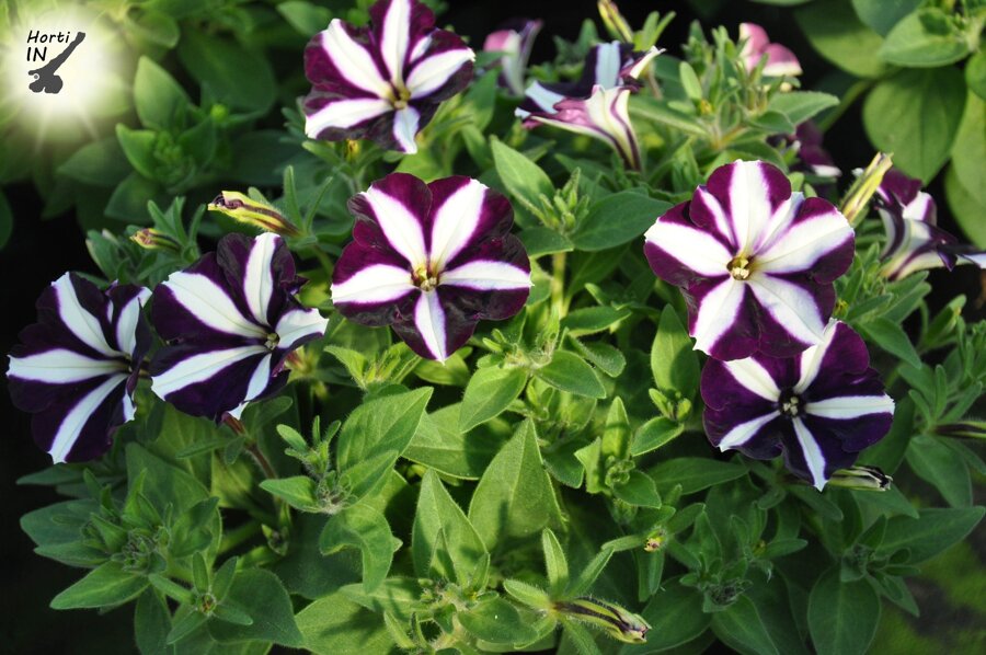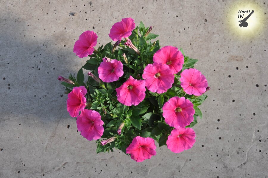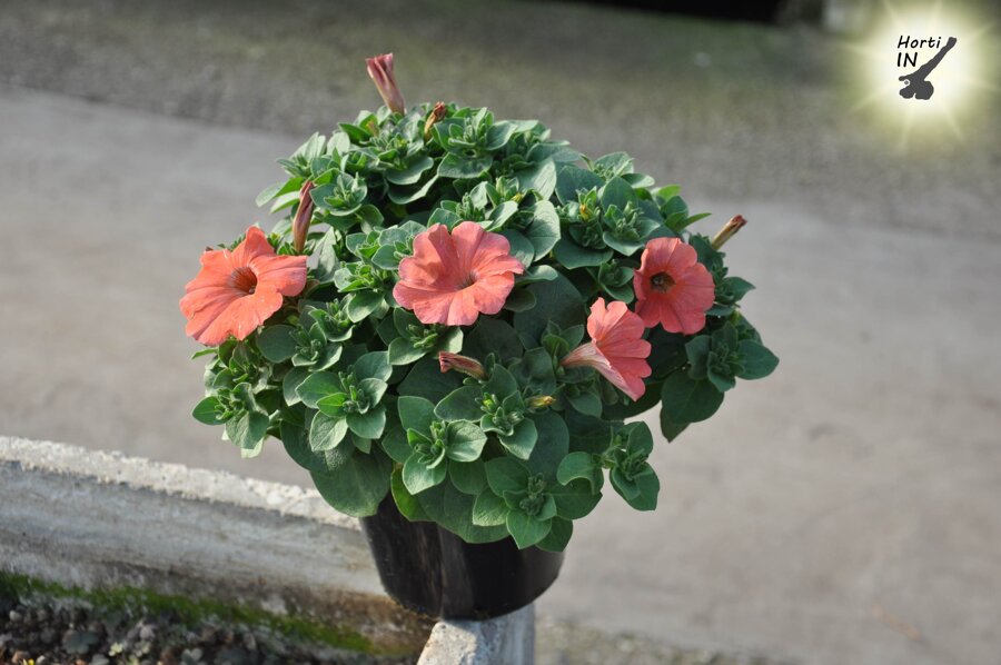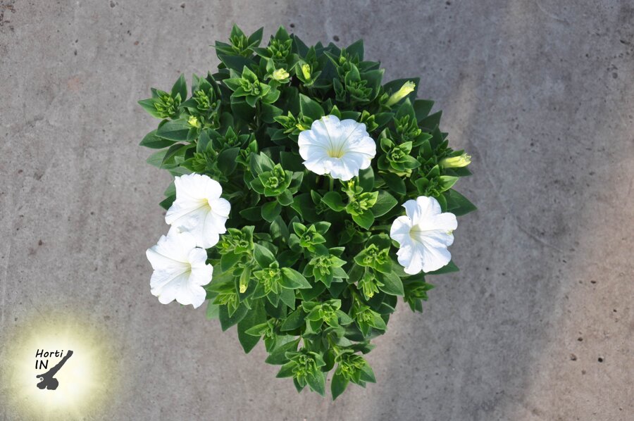 ASSORTIMENTO: vi sono alcune specie di petunia che si caratterizzano per avere un portamento di pianta e fioritura a “cuscino” che le distingue dal classico portamento cascante della petunia in genere e della surfinia. Tra le specie che hanno portamento a “cuscino” sono coltivate per la linea Horti IN le BONNIE e le POPTUNIE in assortimento di colori: bianco, rosa, rosso, giallo tenue, salmone, viola, bicolore bianco/blu e colori venati.