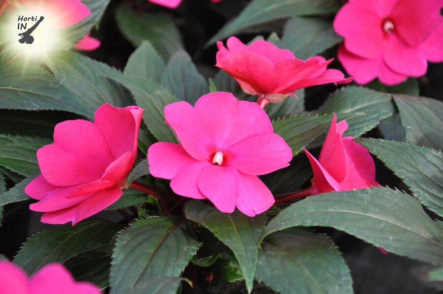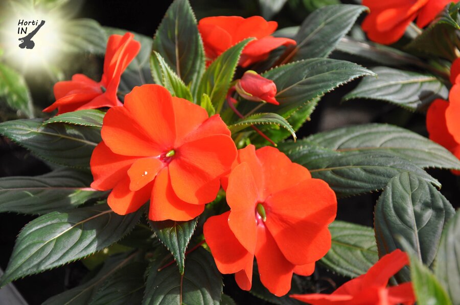 ASSORTIMENTO: le specie di impatiens nuova guinea si caratterizzano per avere colorazioni diverse di fiore e foglia e crescite più rigogliose o più compatte. Per la linea Horti IN, sono state selezionate le specie più rigogliose e copiose di fioritura ed intense di colore. I colori spaziano dal: rosso, salmone, rosa chiaro, rosa, fuxia, viola, bianco e la foglia a seconda delle selezioni può essere verde o bronzata. L'impatiens nuova guinea è una pianta che fiorisce anche a mezz'ombra, se la si vuole piantare a pieno sole è meglio scegliere la selezione SUNPATIENS (comunemente detto anche guinea da sole), questa selezione si caratterizza per avere una crescita più rigogliosa ma non soffre l'esposizione al sole con il giusto apporto idrico.
